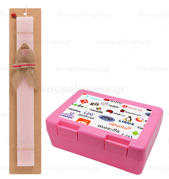 Tech logos, Easter Set, children's snack container PINK & scented flat Easter candle (30cm) (PINK)