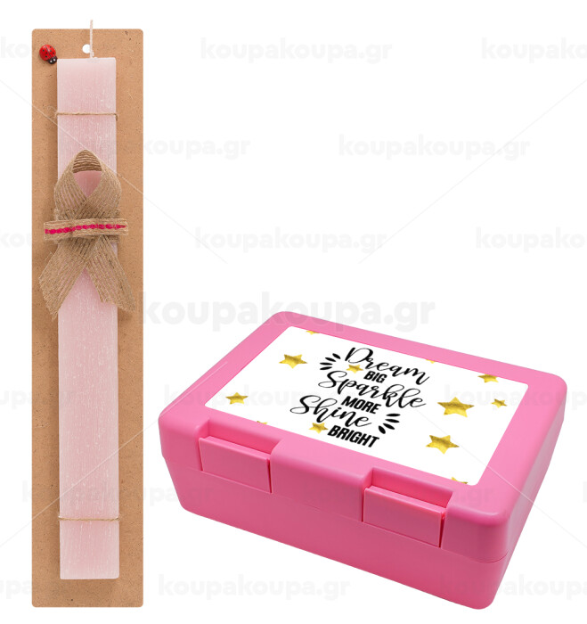Dream big, Sparkle more, Shine bright, Easter Set, children's snack container PINK & scented flat Easter candle (30cm) (PINK)
