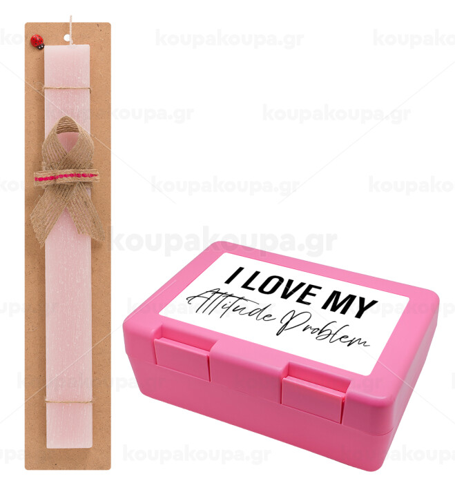 I love my attitude problem, Easter Set, children's snack container PINK & scented flat Easter candle (30cm) (PINK)