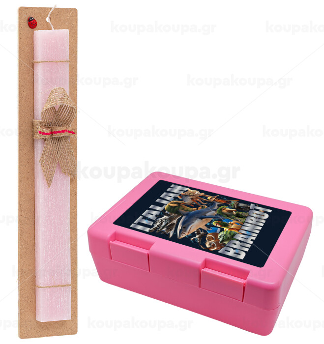 Italian Brainrot, Easter Set, children's snack container PINK & scented flat Easter candle (30cm) (PINK)