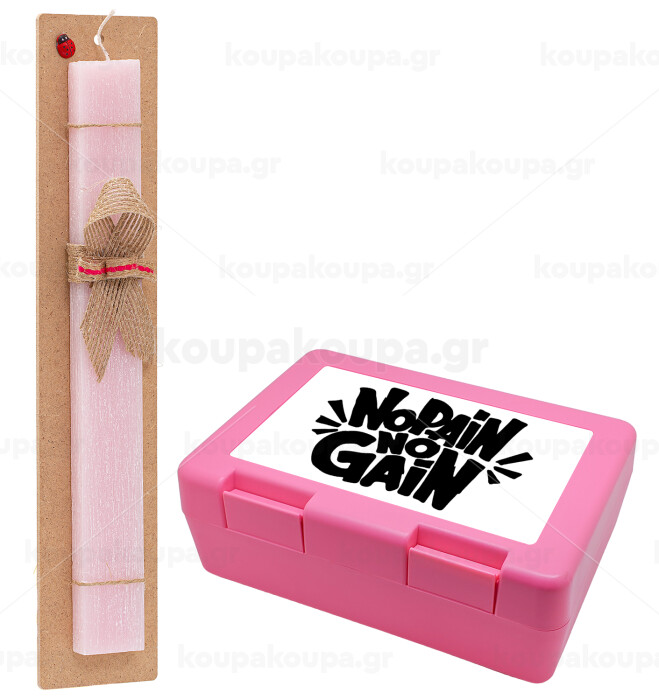 No pain no gain, Easter Set, children's snack container PINK & scented flat Easter candle (30cm) (PINK)