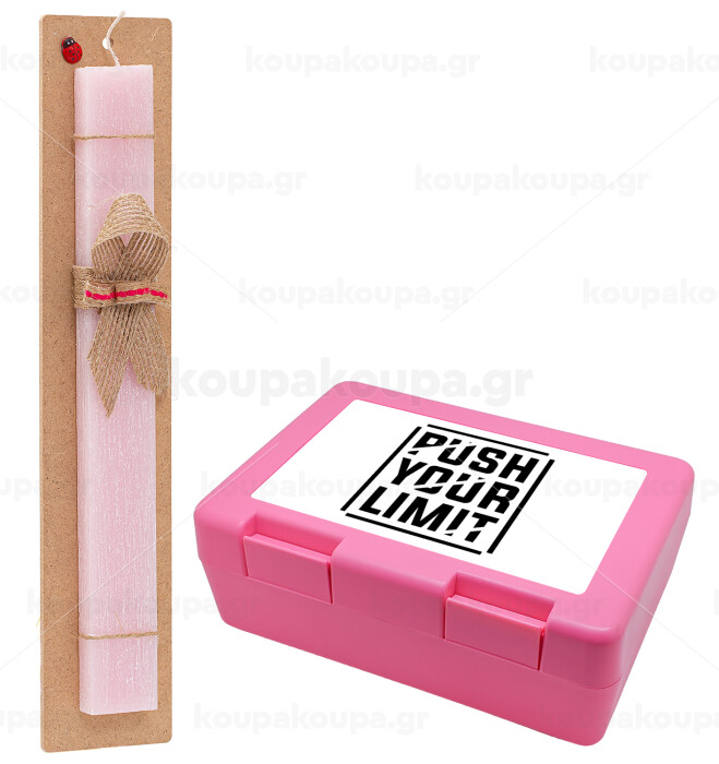 Push your limit, Easter Set, children's snack container PINK & scented flat Easter candle (30cm) (PINK)