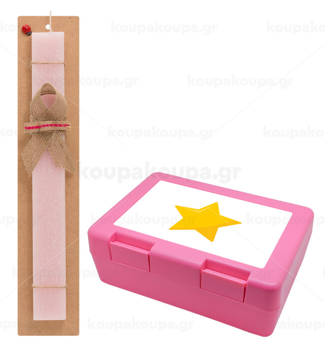 Star, Easter Set, children's snack container PINK & scented flat Easter candle (30cm) (PINK)