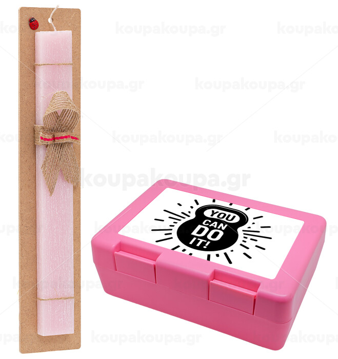 You can do it, Easter Set, children's snack container PINK & scented flat Easter candle (30cm) (PINK)