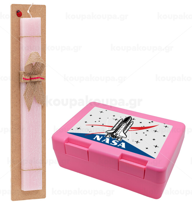 NASA Badge, Easter Set, children's snack container PINK & scented flat Easter candle (30cm) (PINK)