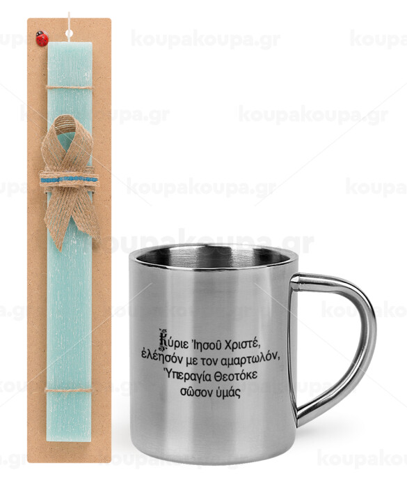 Προσευχή του Ιησού, Easter Set, metallic thermal cup (300ml) & aromatic flat Easter candle (30cm) (TURQUOISE)