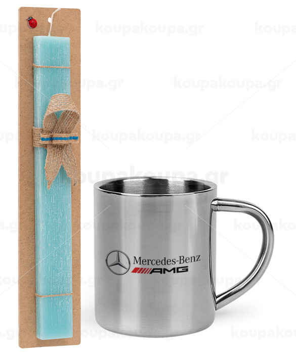 AMG Mercedes, Easter Set, metallic thermal cup (300ml) & aromatic flat Easter candle (30cm) (TURQUOISE)