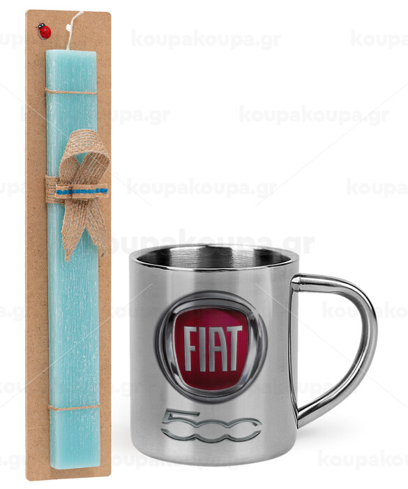 FIAT 500, Easter Set, metallic thermal cup (300ml) & aromatic flat Easter candle (30cm) (TURQUOISE)