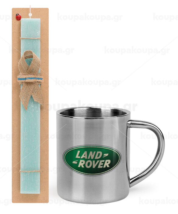 Land Rover, Easter Set, metallic thermal cup (300ml) & aromatic flat Easter candle (30cm) (TURQUOISE)