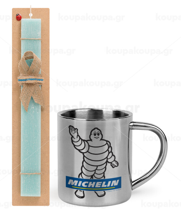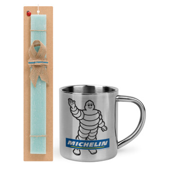 Michelin, Easter Set, metallic thermal cup (300ml) & aromatic flat Easter candle (30cm) (TURQUOISE)