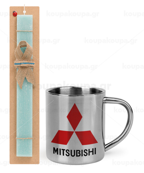 mitsubishi, Easter Set, metallic thermal cup (300ml) & aromatic flat Easter candle (30cm) (TURQUOISE)