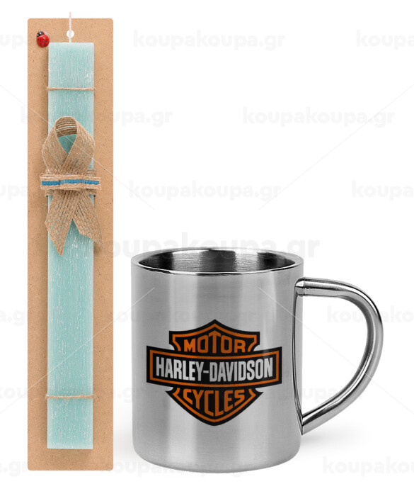 Motor Harley Davidson, Easter Set, metallic thermal cup (300ml) & aromatic flat Easter candle (30cm) (TURQUOISE)
