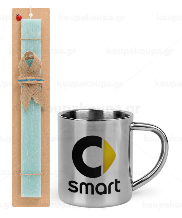 smart, Easter Set, metallic thermal cup (300ml) & aromatic flat Easter candle (30cm) (TURQUOISE)