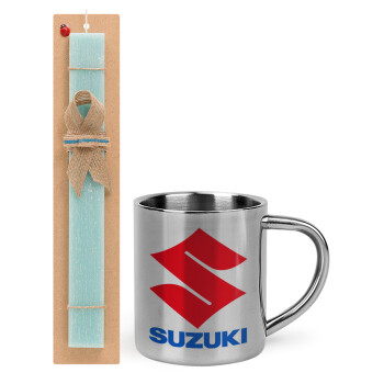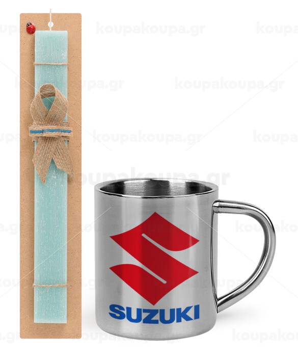 SUZUKI, Easter Set, metallic thermal cup (300ml) & aromatic flat Easter candle (30cm) (TURQUOISE)