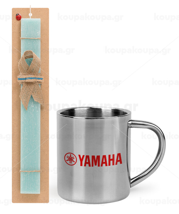 Yamaha, Easter Set, metallic thermal cup (300ml) & aromatic flat Easter candle (30cm) (TURQUOISE)