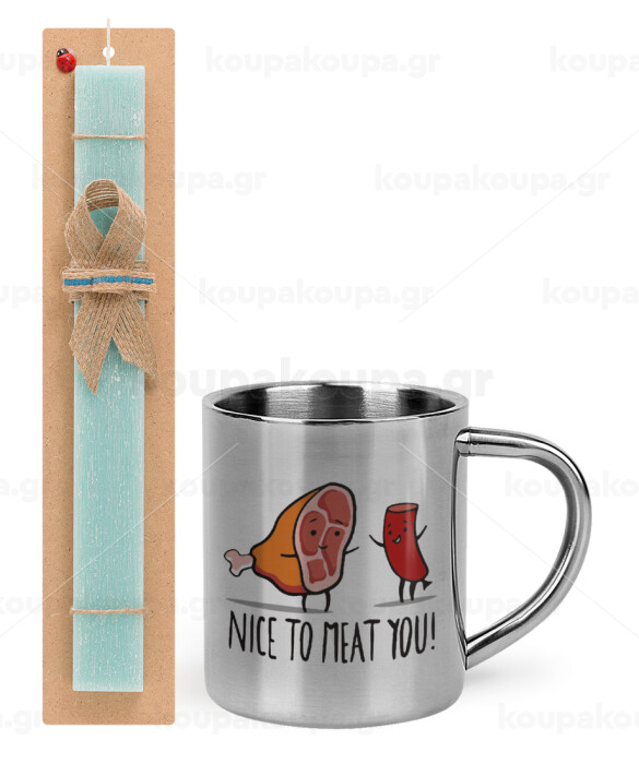 Nice to MEAT you, Easter Set, metallic thermal cup (300ml) & aromatic flat Easter candle (30cm) (TURQUOISE)
