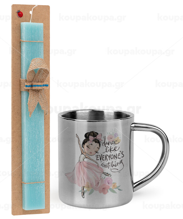Dance Like everyone's watching, Easter Set, metallic thermal cup (300ml) & aromatic flat Easter candle (30cm) (TURQUOISE)