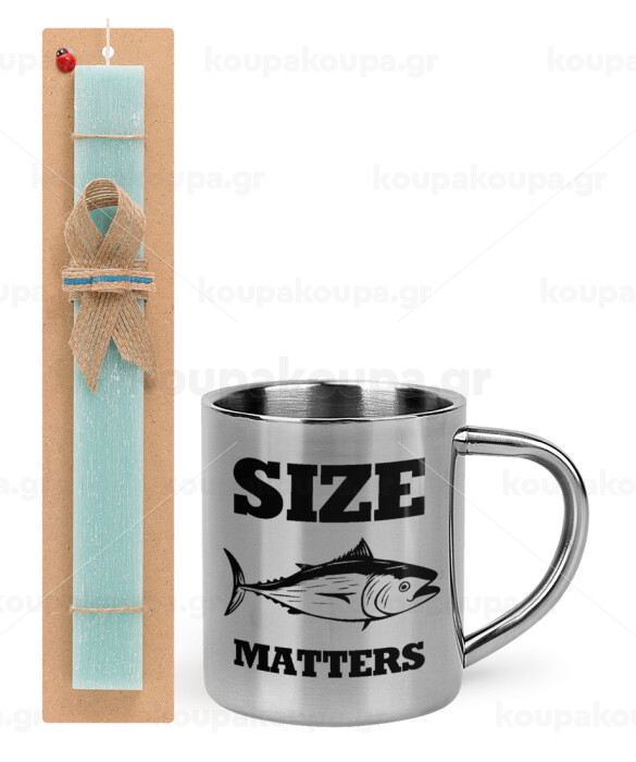Size matters, Easter Set, metallic thermal cup (300ml) & aromatic flat Easter candle (30cm) (TURQUOISE)