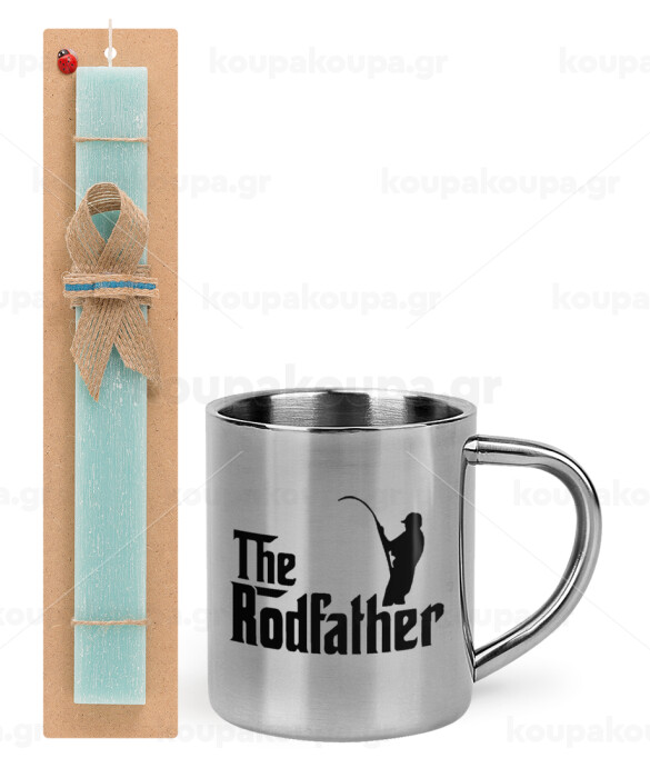 The rodfather, Easter Set, metallic thermal cup (300ml) & aromatic flat Easter candle (30cm) (TURQUOISE)