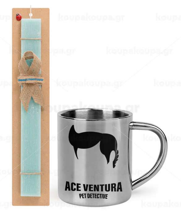 Ace Ventura Pet Detective, Easter Set, metallic thermal cup (300ml) & aromatic flat Easter candle (30cm) (TURQUOISE)