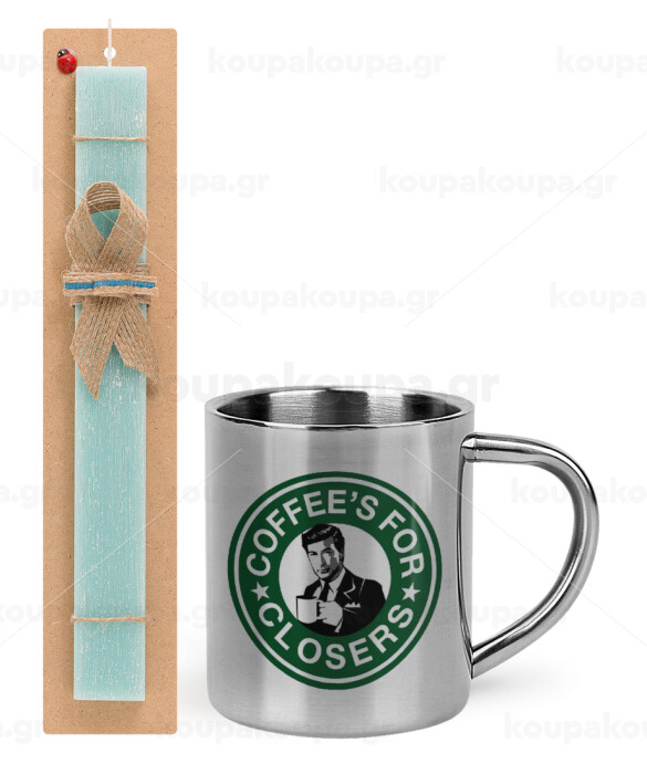Coffee's for closers, Easter Set, metallic thermal cup (300ml) & aromatic flat Easter candle (30cm) (TURQUOISE)
