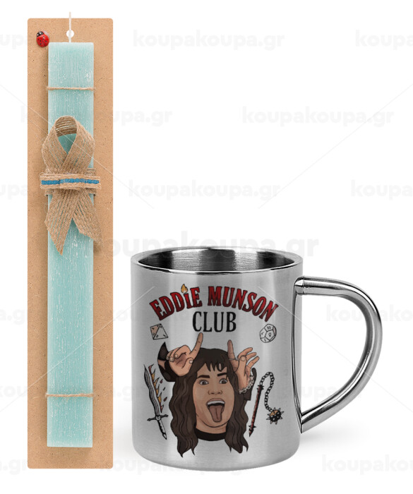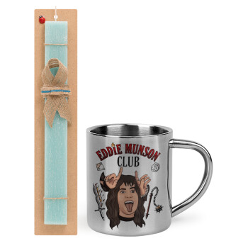 Eddie Munson, Hellfire CLub, Stranger Things, Easter Set, metallic thermal cup (300ml) & aromatic flat Easter candle (30cm) (TURQUOISE)