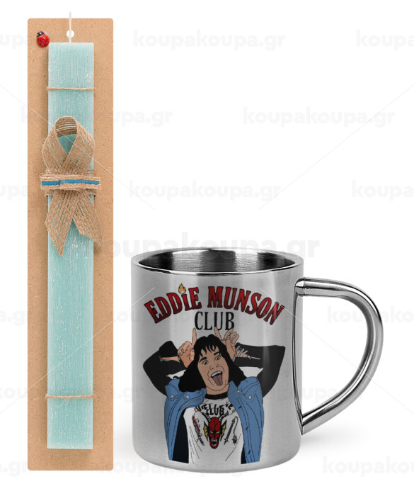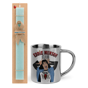 Eddie Munson, Easter Set, metallic thermal cup (300ml) & aromatic flat Easter candle (30cm) (TURQUOISE)