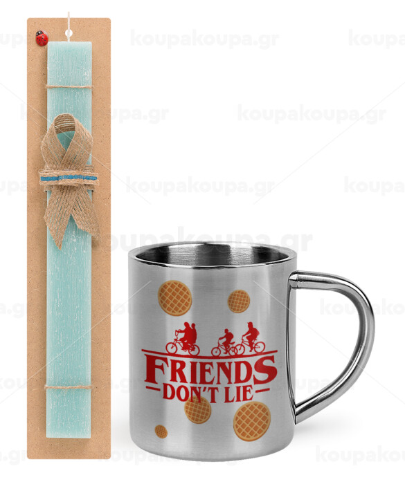 Friends Don't Lie, Stranger Things, Easter Set, metallic thermal cup (300ml) & aromatic flat Easter candle (30cm) (TURQUOISE)