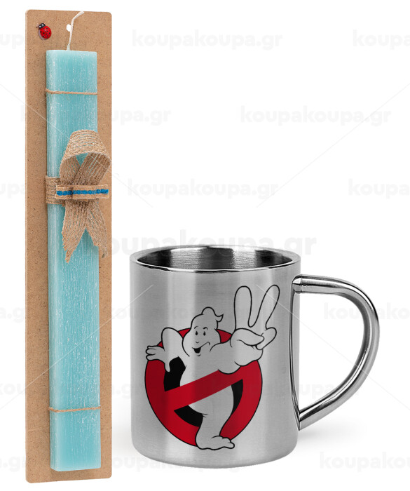 Ghostbusters, Easter Set, metallic thermal cup (300ml) & aromatic flat Easter candle (30cm) (TURQUOISE)