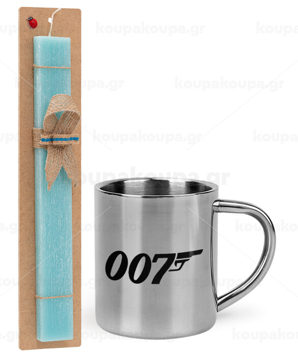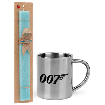 James Bond 007, Easter Set, metallic thermal cup (300ml) & aromatic flat Easter candle (30cm) (TURQUOISE)