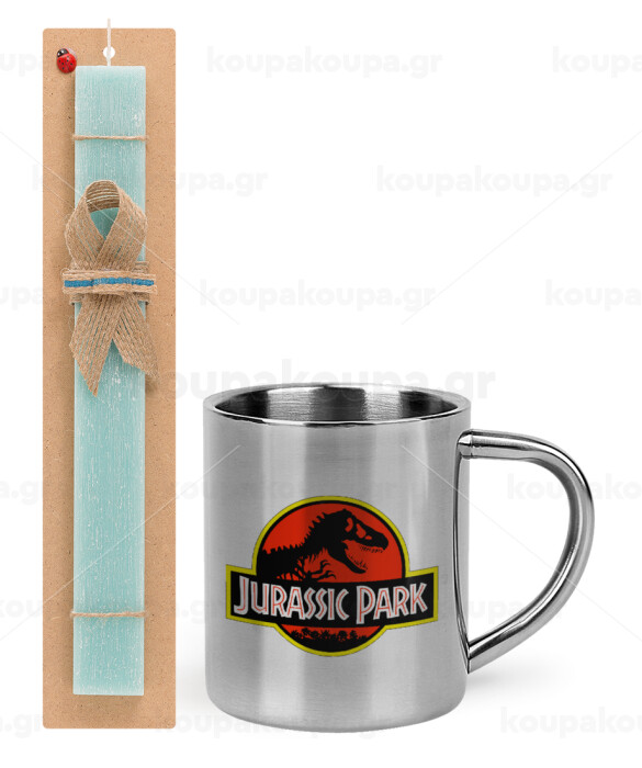 Jurassic park, Easter Set, metallic thermal cup (300ml) & aromatic flat Easter candle (30cm) (TURQUOISE)
