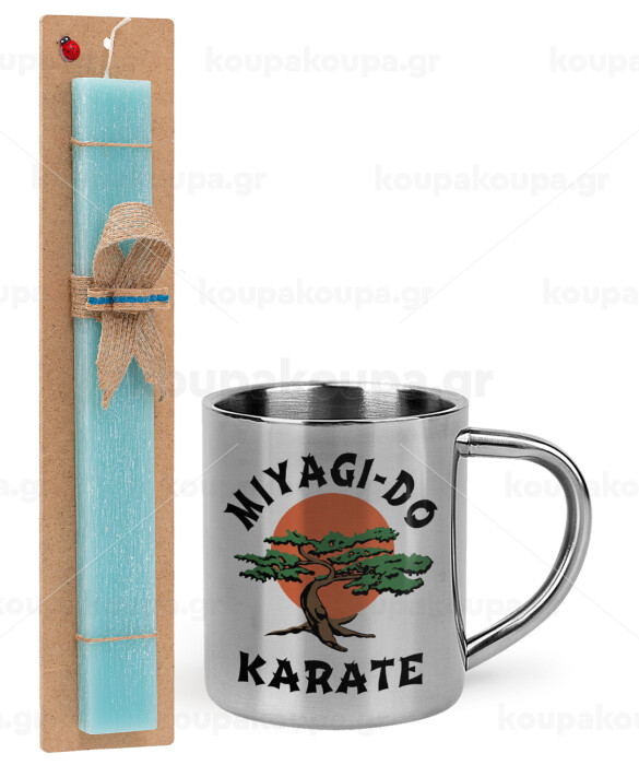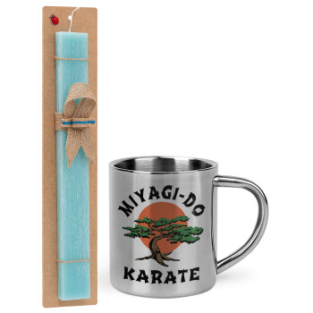 Miyagi-do karate, Easter Set, metallic thermal cup (300ml) & aromatic flat Easter candle (30cm) (TURQUOISE)