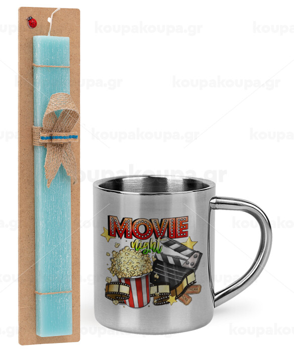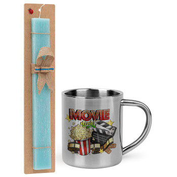 Movie night, Easter Set, metallic thermal cup (300ml) & aromatic flat Easter candle (30cm) (TURQUOISE)