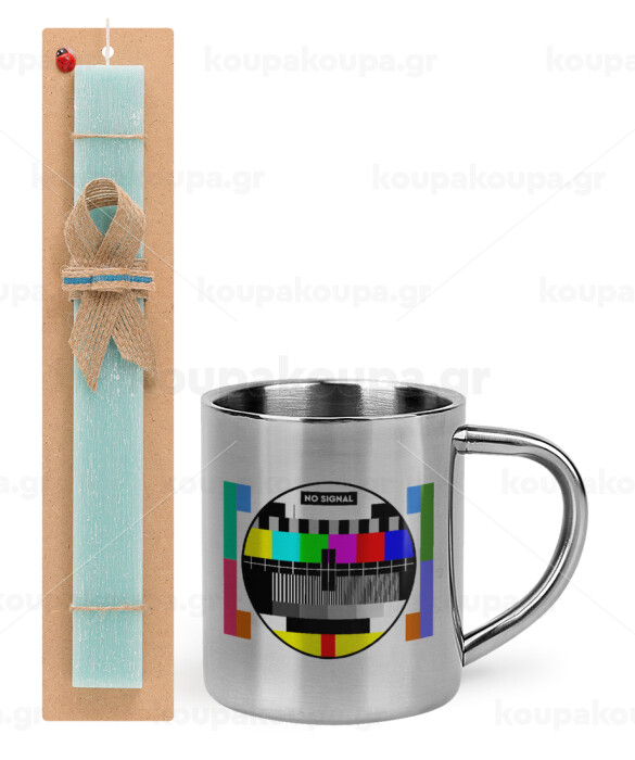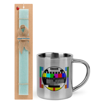 No signal, Easter Set, metallic thermal cup (300ml) & aromatic flat Easter candle (30cm) (TURQUOISE)
