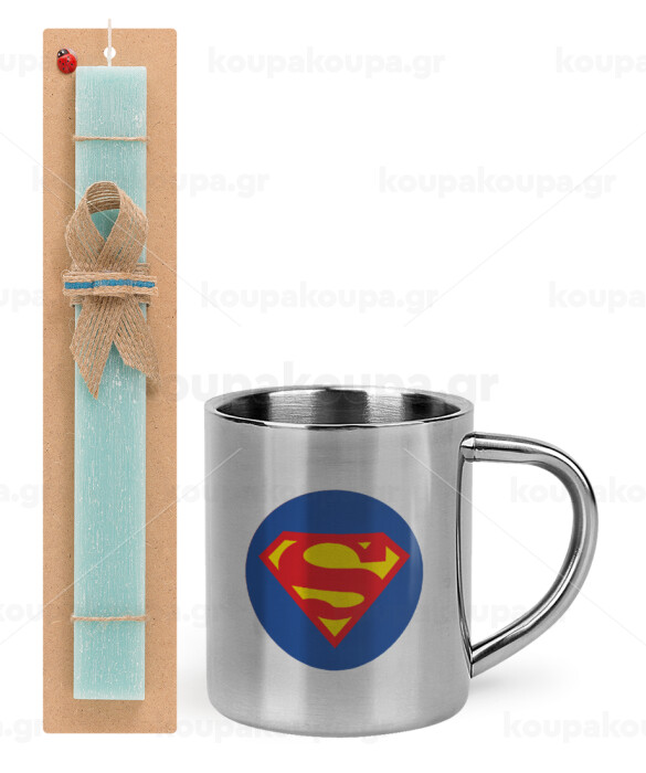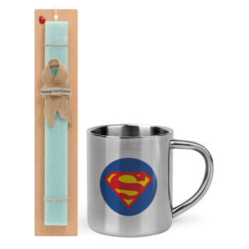 Superman, Easter Set, metallic thermal cup (300ml) & aromatic flat Easter candle (30cm) (TURQUOISE)