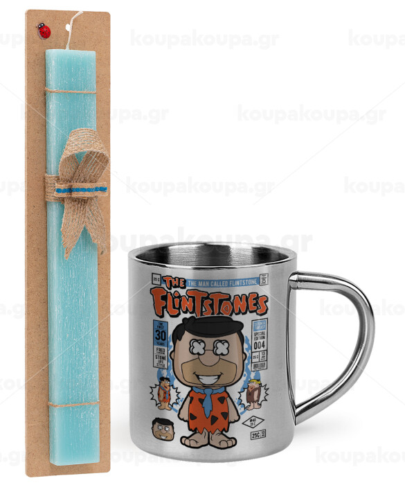 The flintstones, Easter Set, metallic thermal cup (300ml) & aromatic flat Easter candle (30cm) (TURQUOISE)