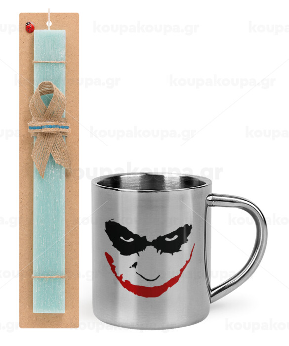 The joker smile, Easter Set, metallic thermal cup (300ml) & aromatic flat Easter candle (30cm) (TURQUOISE)