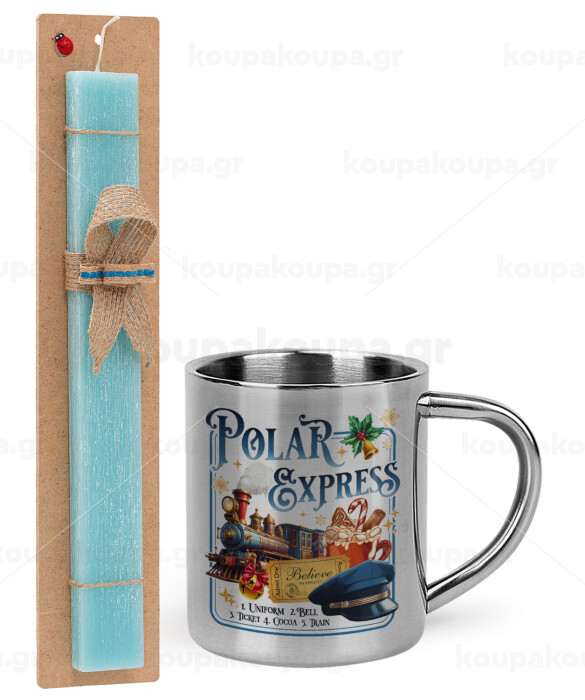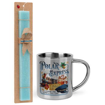 The Polar Express, Easter Set, metallic thermal cup (300ml) & aromatic flat Easter candle (30cm) (TURQUOISE)