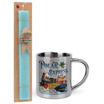 The Polar Express, Easter Set, metallic thermal cup (300ml) & aromatic flat Easter candle (30cm) (TURQUOISE)