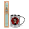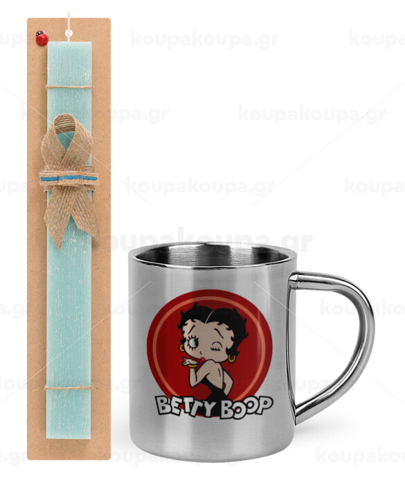 Betty Boop kiss, Easter Set, metallic thermal cup (300ml) & aromatic flat Easter candle (30cm) (TURQUOISE)