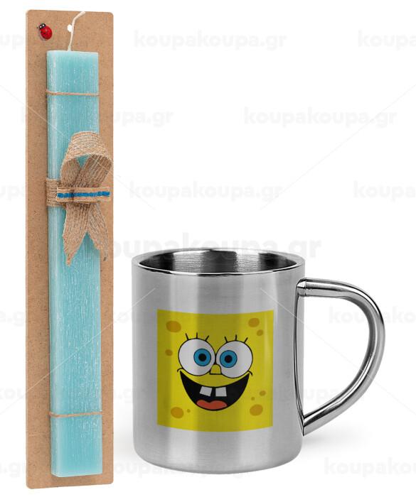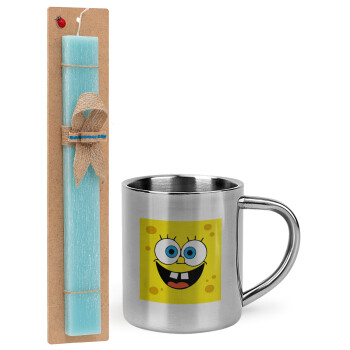 BOB, Easter Set, metallic thermal cup (300ml) & aromatic flat Easter candle (30cm) (TURQUOISE)
