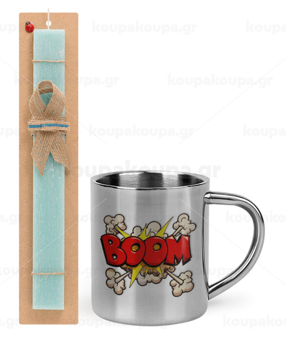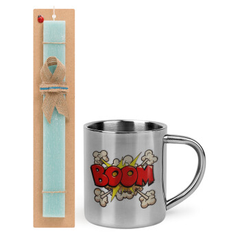 BOOM!!!, Easter Set, metallic thermal cup (300ml) & aromatic flat Easter candle (30cm) (TURQUOISE)