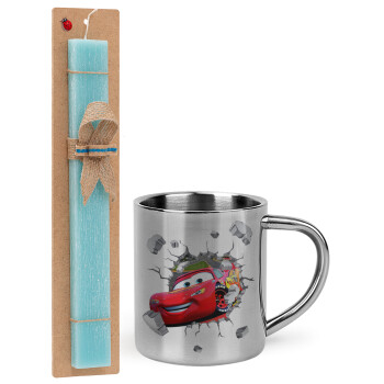 Brick McQueen, Easter Set, metallic thermal cup (300ml) & aromatic flat Easter candle (30cm) (TURQUOISE)