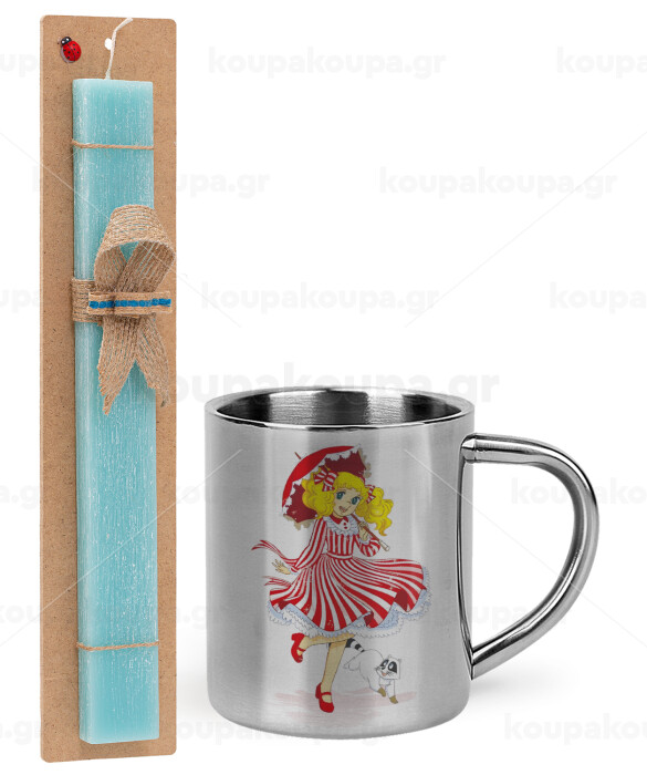 Candy, Easter Set, metallic thermal cup (300ml) & aromatic flat Easter candle (30cm) (TURQUOISE)