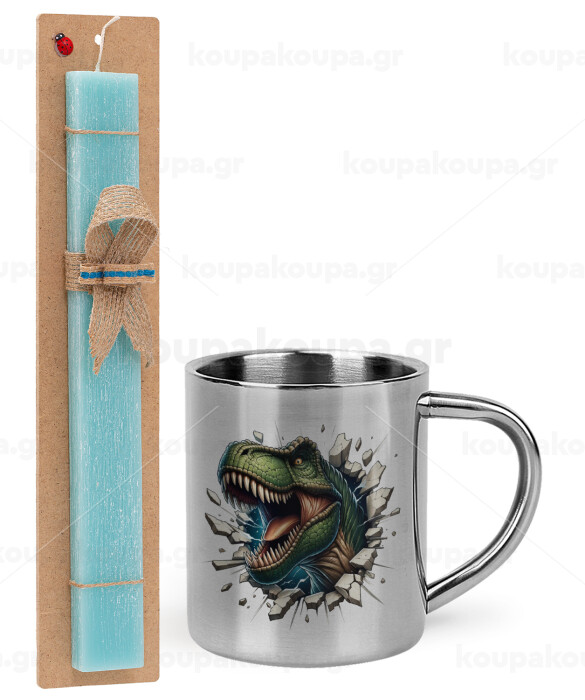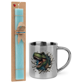 Dinosaur break wall, Easter Set, metallic thermal cup (300ml) & aromatic flat Easter candle (30cm) (TURQUOISE)