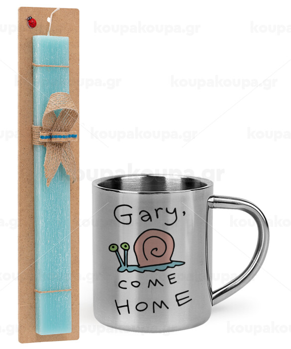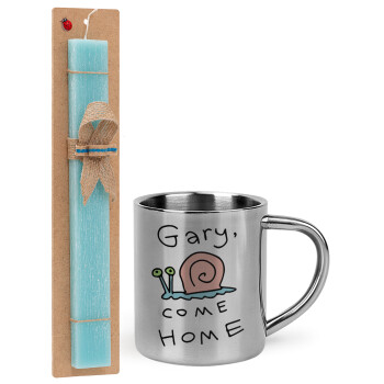 Gary come home, Easter Set, metallic thermal cup (300ml) & aromatic flat Easter candle (30cm) (TURQUOISE)
