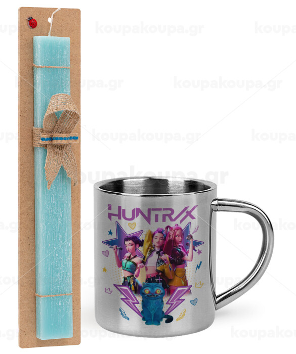 Huntrix K-pop series, Easter Set, metallic thermal cup (300ml) & aromatic flat Easter candle (30cm) (TURQUOISE)