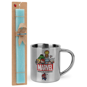MARVEL, Easter Set, metallic thermal cup (300ml) & aromatic flat Easter candle (30cm) (TURQUOISE)