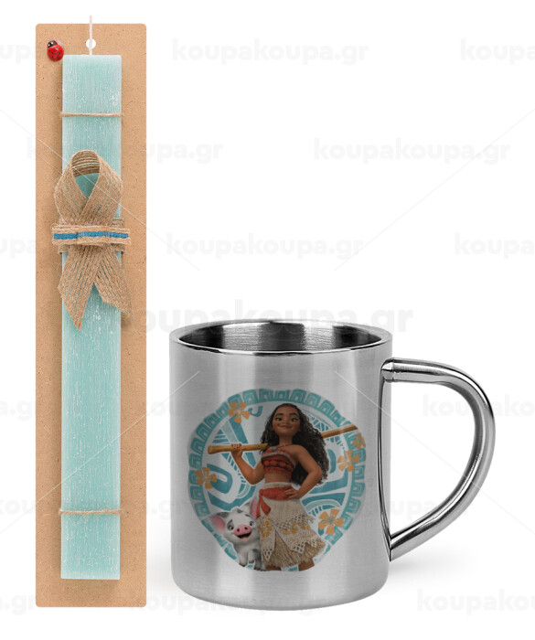 Moana, Easter Set, metallic thermal cup (300ml) & aromatic flat Easter candle (30cm) (TURQUOISE)