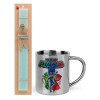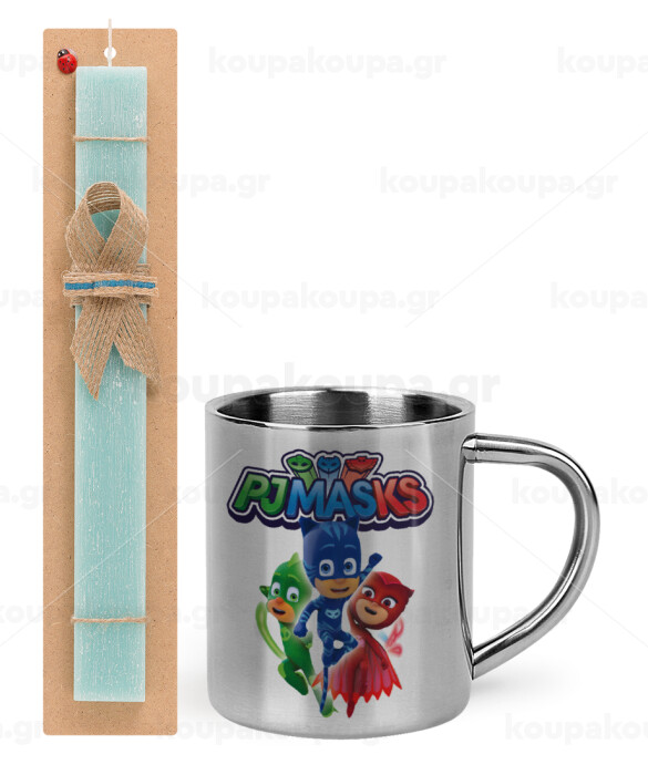 PJ masks, Easter Set, metallic thermal cup (300ml) & aromatic flat Easter candle (30cm) (TURQUOISE)
